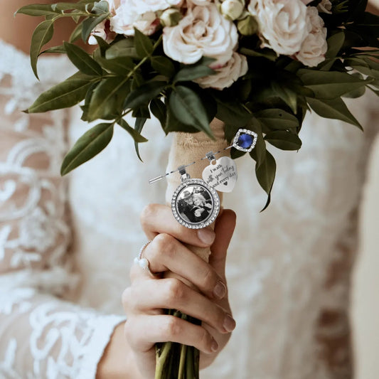 Wedding Bouquet Photo Charm – Crystal & Plain for Bride or Groom