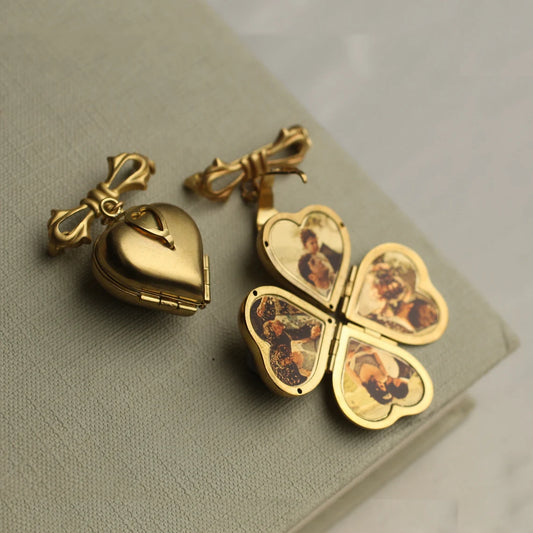 Personalized Heart Locket Brooch – 4 Photos Keepsake Gift