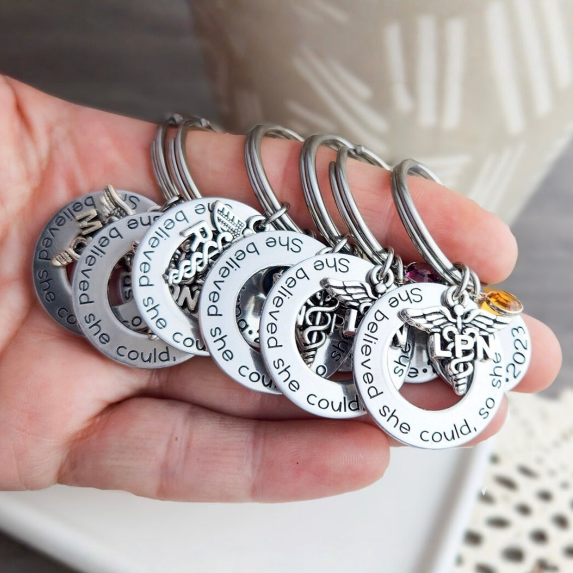 Celebrate the achievement of nursing students with this customizable nurse keychain. A perfect gift for graduations, pinning ceremonies, or aspiring nurses, combining inspiration, personalization, and professional pride.
